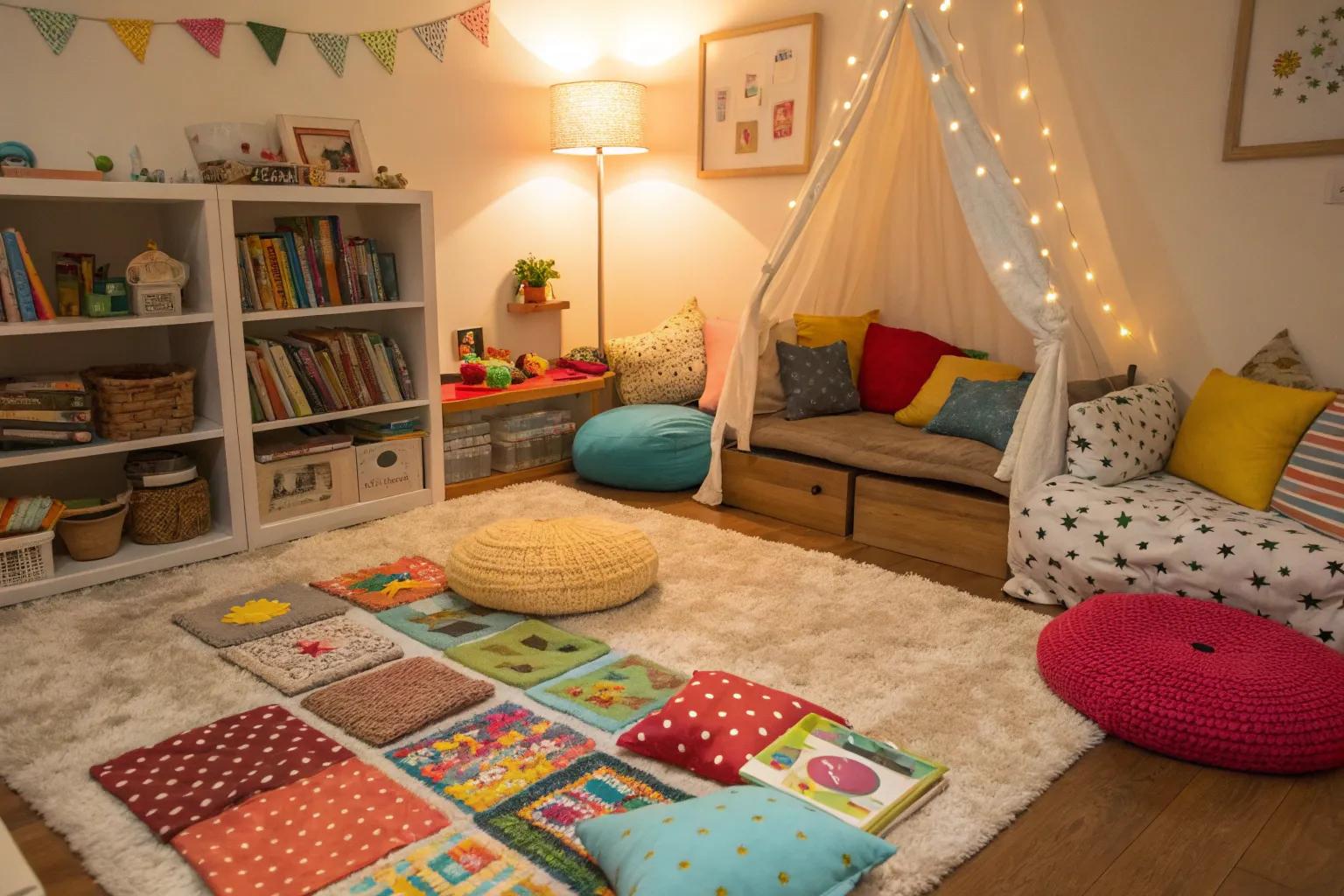 Transform a quiet corner into a snug reading nook with soft cushions and blankets. Children enjoy immersing themselves in books here, providing a perfect spot to relax and imagine. This dedicated space encourages calm reflection and literary adventures. I often find myself retreating here with a good book as well.