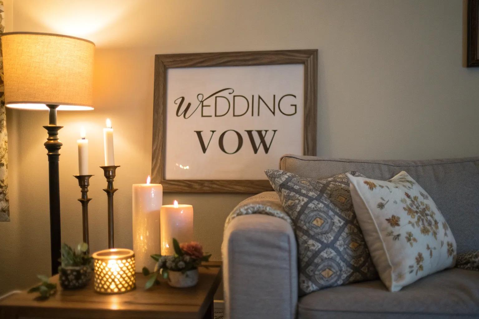 - Rustic Wood Wall Art: Add a handcrafted touch to your vow display with rustic wood decor.