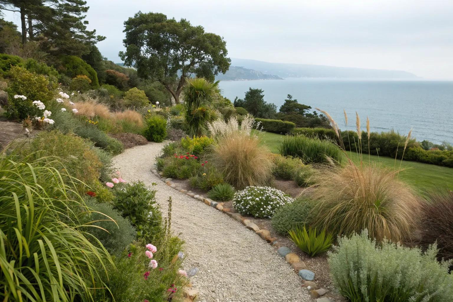 Incorporate gently winding paths to encourage leisurely strolls and reflect the organic shapes of coastal landscapes, adding a sense of discovery to your garden.