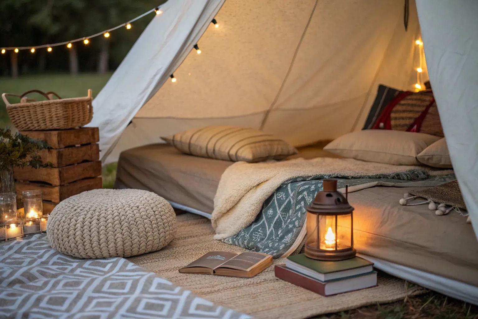 - Potted Indoor Plants: Easy-care greenery to enliven your tent.