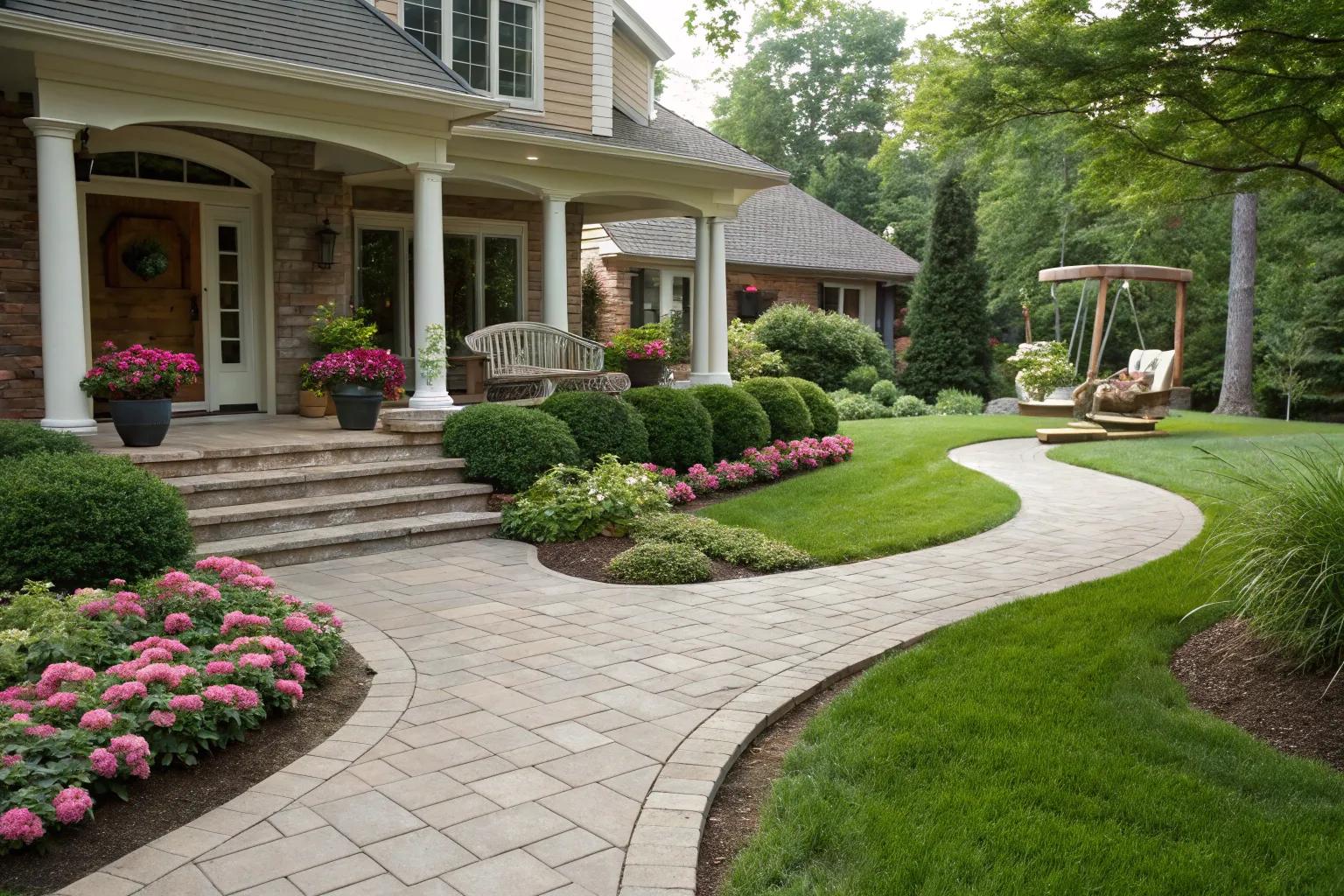 A classic brick paver walkway adds timeless charm to your home.
