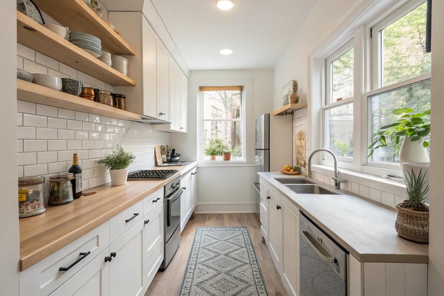 In narrow kitchens, a well-chosen runner rug can visually extend the space while injecting warmth and character. I often suggest colorful or patterned runners to brighten the floor and add a personal touch without occupying any functional space. This simple addition can dramatically change the ambiance and make the kitchen feel more inviting.