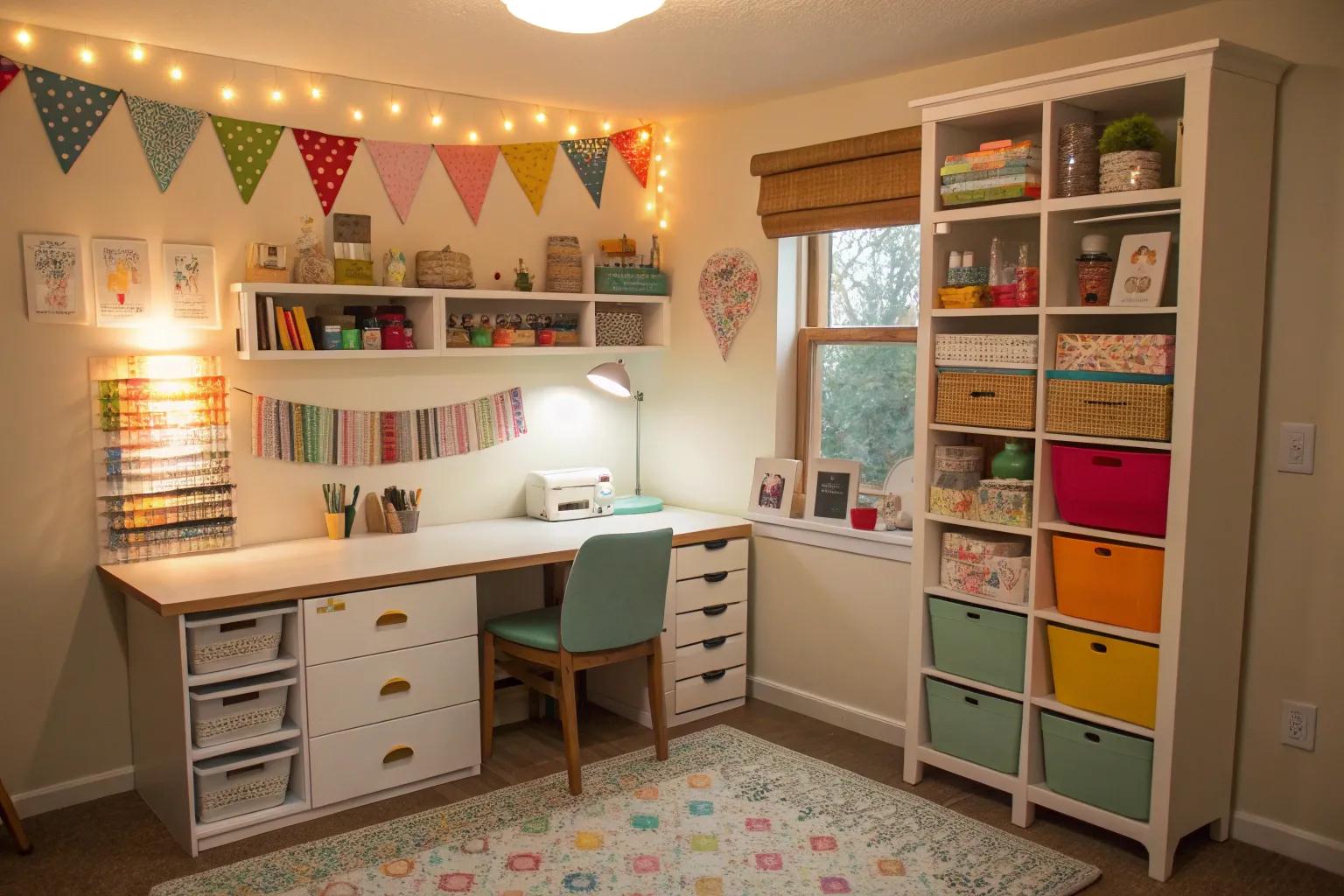 Opt for a small footprint desk or a foldable wall-mounted table to maximize your room’s versatility. These options allow you to quickly convert your space from a crafting zone to a living area without sacrificing functionality. Fold-down tables are especially popular in urban apartments where space is at a premium.