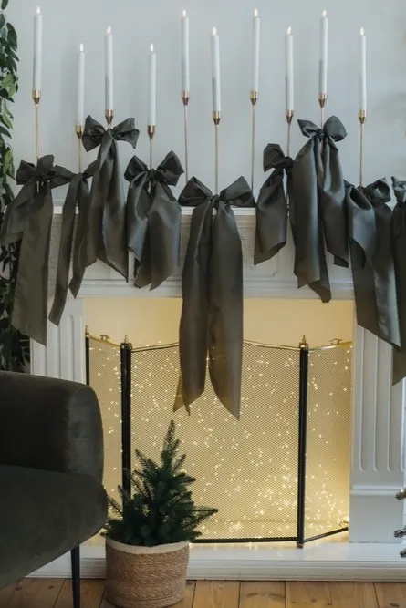 Incorporate tinsel sparingly in gold or silver tones to maintain a simple, modern look. Paired with greenery, it keeps the mantel fresh and aligned with organic modern style.