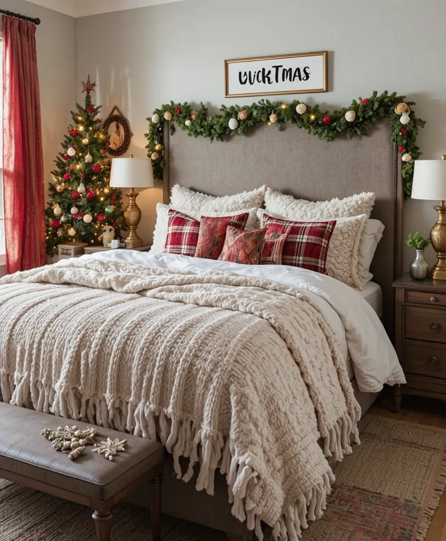 While holiday decorations often focus on living rooms and entryways, your bedroom is equally deserving of a festive transformation.