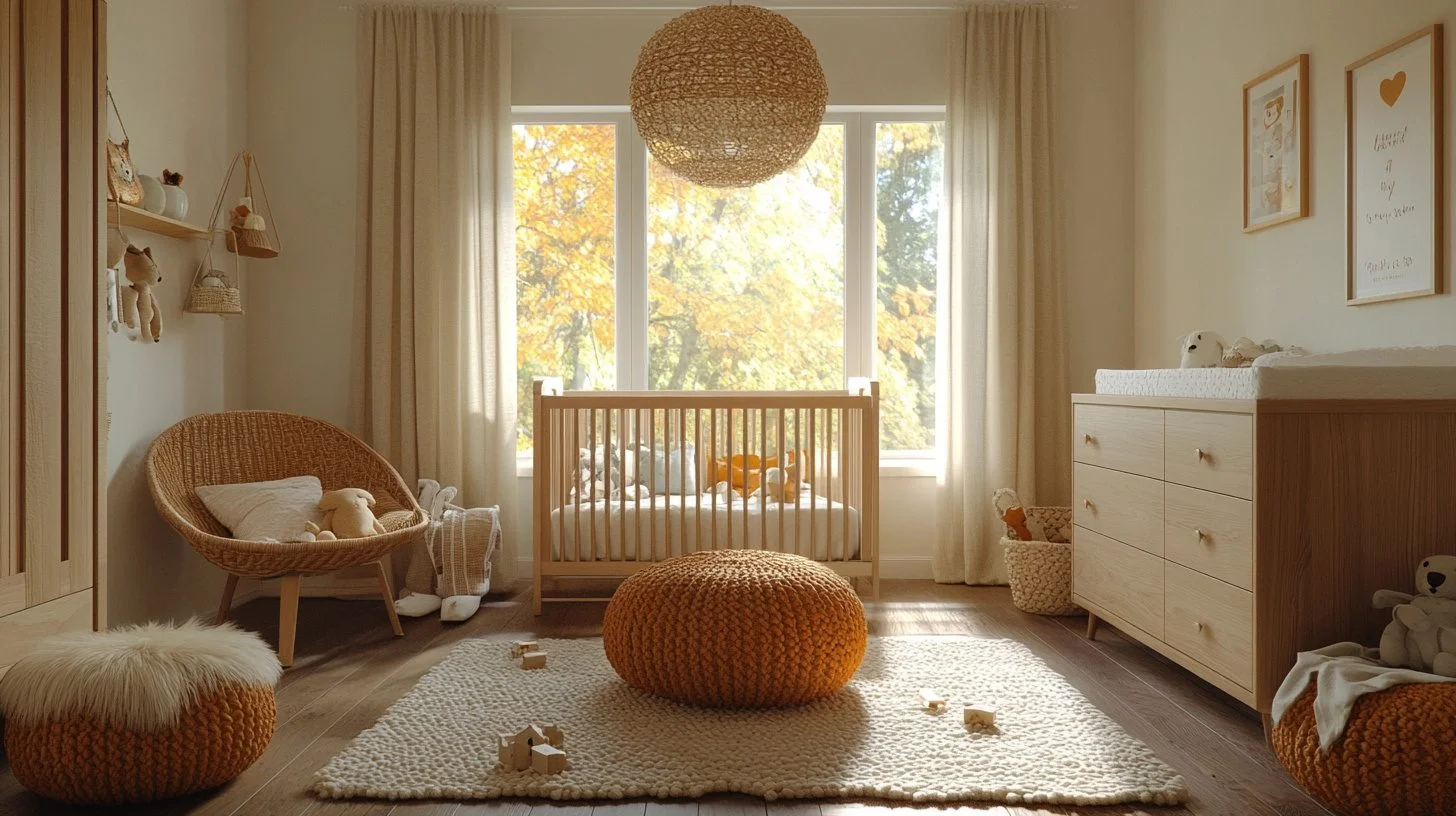 Ideal for colder climates, this nursery features thick wool blankets, chunky knits, and natural wood accents to create a snug and inviting atmosphere. Earthy tones and tactile textiles provide both warmth and a comforting, homely feel.