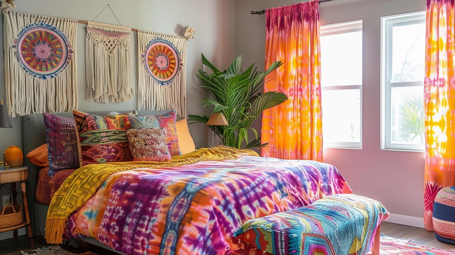 Inject energy and vibrancy with tie-dye curtains that boast a spectrum of lively hues. These playful window treatments are ideal for adding a joyful, bohemian spirit to your bedroom.