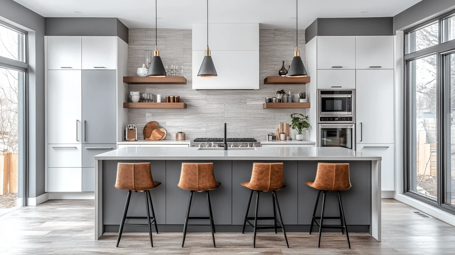 While white cabinetry reflects light and opens up the space, grey tones add a welcoming warmth that prevents the kitchen from feeling sterile. Incorporate natural elements like warm wood flooring or stone countertops to enhance this balance, creating a cozy yet elegant environment perfect for family meals and entertaining guests.