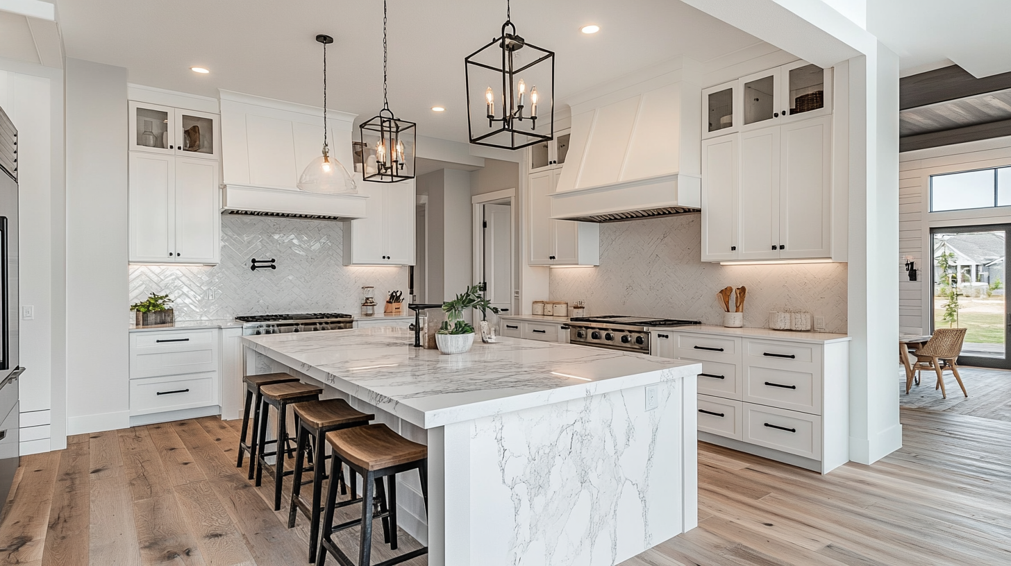 White countertops with minimalist design principles create a bright, open feel that enhances any kitchen. Their simplicity allows for easy pairing with various cabinetry and accent colors, ensuring a timeless and elegant look that remains fresh year after year.