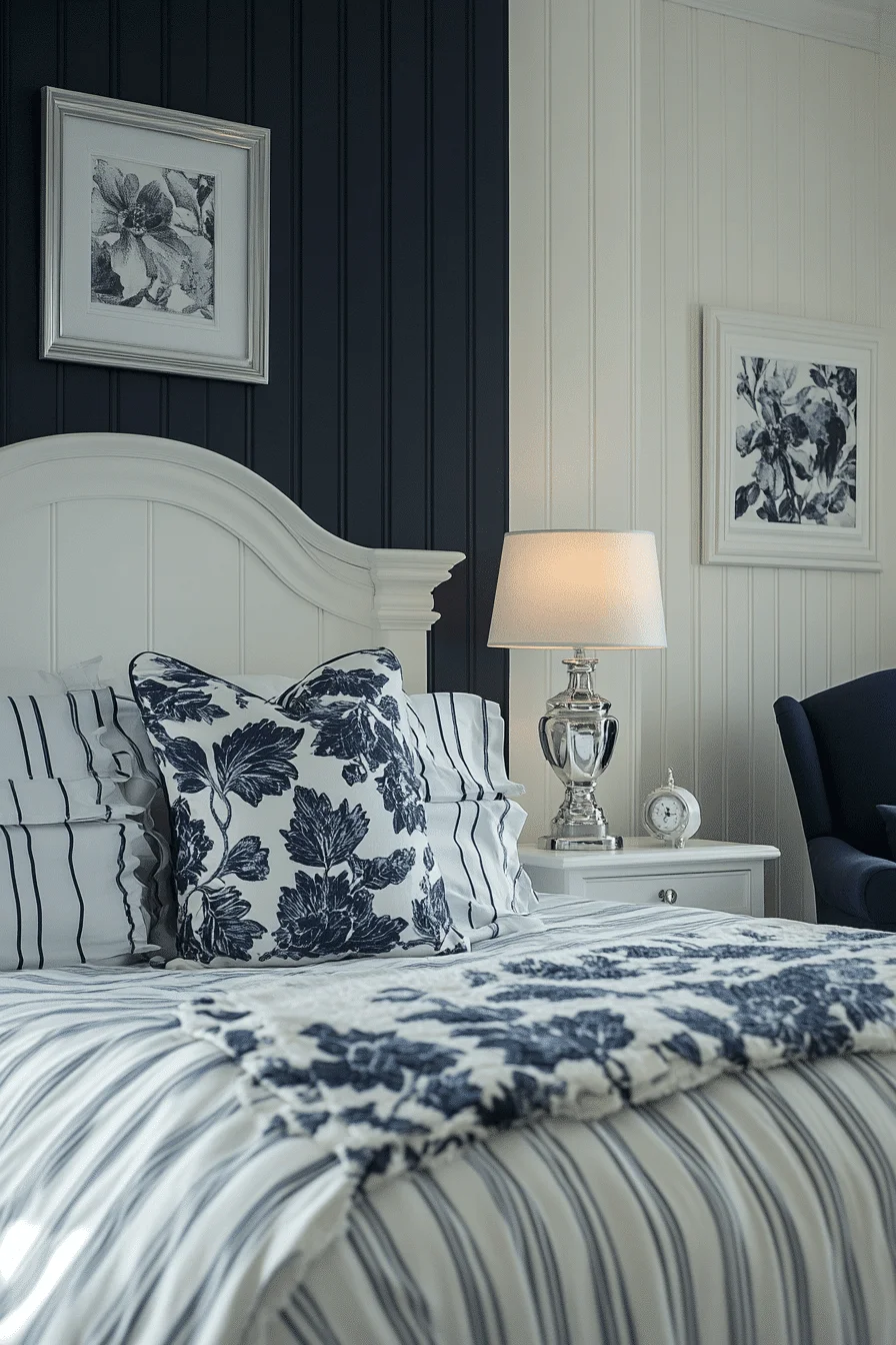Incorporate timeless navy and white stripes to evoke a crisp, nautical ambiance in your bedroom. This design leverages the striking contrast of these hues to create a fresh, invigorating atmosphere. Accents like antique brass hardware and ocean-themed artwork enhance the maritime vibe, while plush throws and cushions add warmth and comfort. For those seeking to elevate this look, consider adding a nautical bedroom decor collection to complete the theme.