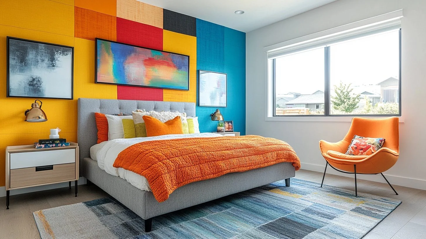 Design an Interactive Color Wall featuring vibrant hues combined with chalkboard or magnetic paint, offering a creative space for expression and play.