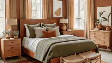 Paint walls in warm beige and introduce olive through towels, shower curtains, or accent tiles. Incorporate wooden elements like shelves or vanity units to enhance the organic feel. Adding live plants thrives in this palette, bringing freshness and vitality.