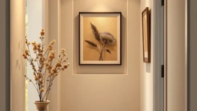 Transform your hallway into a personal gallery by selecting artwork that complements your home’s overall aesthetic. Mix frame sizes and styles for visual interest, but maintain a consistent theme or color scheme to ensure a polished look. This approach adds personality and elevates the hallway from a mere passage to a curated space.