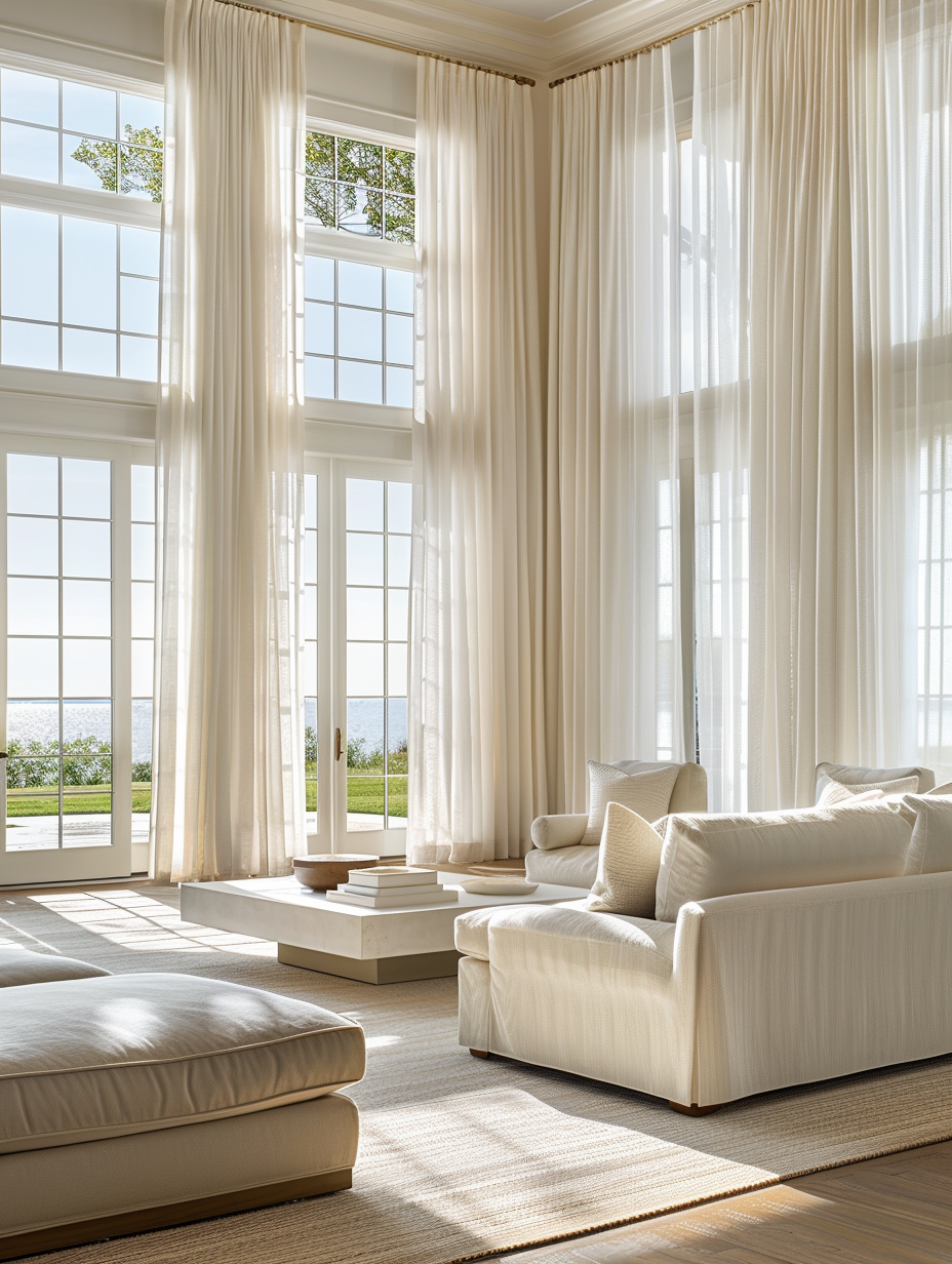 Window coverings control light and add texture to your living room. Sheer curtains offer a light, airy feel, while heavier drapes provide warmth and privacy. Blinds and shades are practical, budget-friendly options that blend functionality with style.