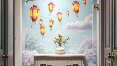 Introduce a touch of drama with a garnet sofa paired with gold mirrors and plush fabrics. This affordable yet opulent combination creates a glamorous nook that’s both cozy and stylish.
