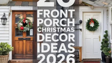 Decorate with white ornaments and warm white lights to create a soft, elegant glow that enhances the cozy holiday atmosphere.