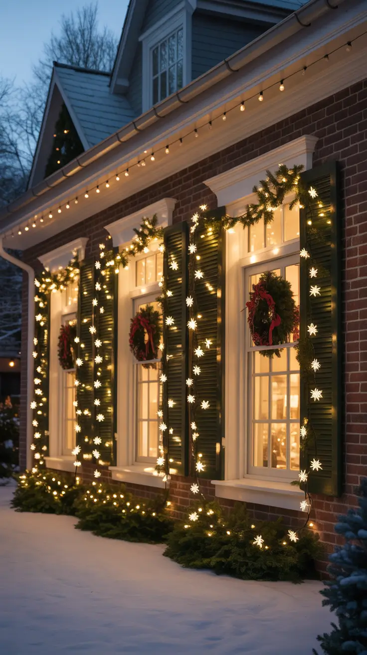 Outlining windows with twinkling star-shaped lights draws attention to your home’s structure while adding a whimsical touch. This style suits both modern and traditional homes, offering a playful yet elegant holiday accent.