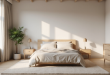 Step into tranquility with a serene beach house bedroom where ocean-inspired decor meets soft white furniture. Gentle waves of blue…