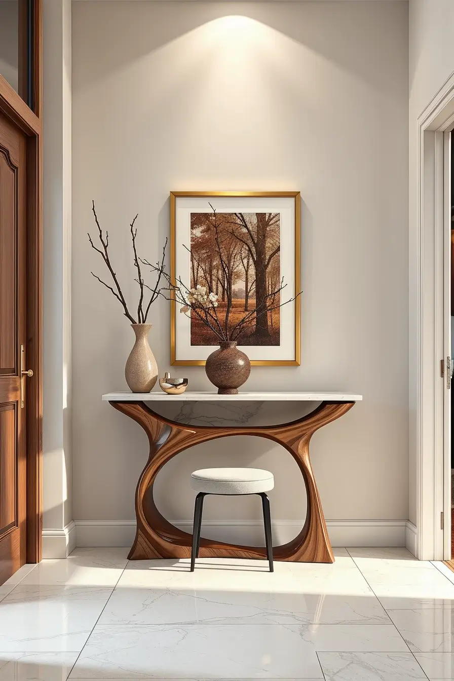 Introducing a sculptural console table can instantly transform a plain entryway into a sophisticated space. These tables serve both decorative and organizational purposes, especially in narrow hallways. Their unique shapes draw attention and invite guests into a thoughtfully curated environment.