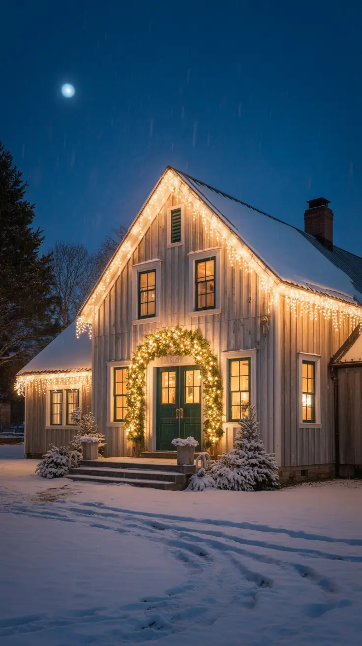Highlight your home’s architecture by tracing rooflines with warm white string lights-a timeless and elegant outdoor Christmas decoration for 2025. This subtle glow adds sophistication and charm without overwhelming the design.