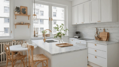 In tight apartment spaces, a minimalist kitchen design can be a game-changer. The clean, white cabinetry paired with a subtle marble backsplash creates an airy and sophisticated environment that visually expands the room. Incorporating under-cabinet lighting not only enhances functionality but also adds a warm ambiance, highlighting the kitchen’s refined materials.