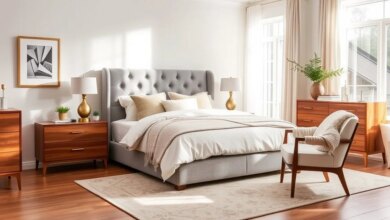 I build the space with a low-profile sofa, a wood or stone coffee table for Rustic texture, and a neutral rug that frames the scene. Brass floor lamps echo the tree lights, and linen curtains soften window lines. I round out styling with ribbon decorating in satin or velvet, glass baubles for shine, and a star or modern sculptural Toppers piece that suits the architecture.
