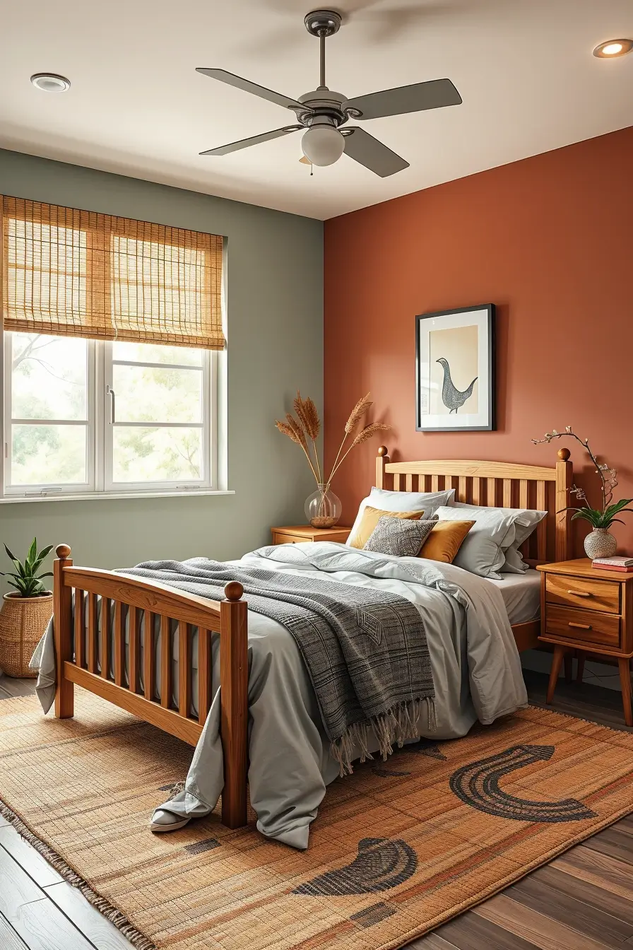 Accent walls are a powerful way to introduce earthy tones without overwhelming a bedroom. Colors like clay, terracotta, or sage green create depth and a grounded feel, shifting subtly with daylight to maintain a restful ambiance.