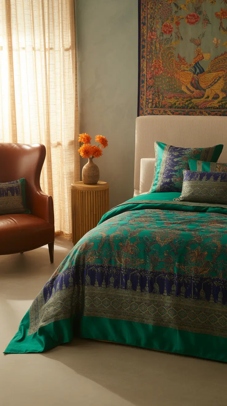 Indian textiles bring warmth and character, perfect for layering in eclectic interiors.
